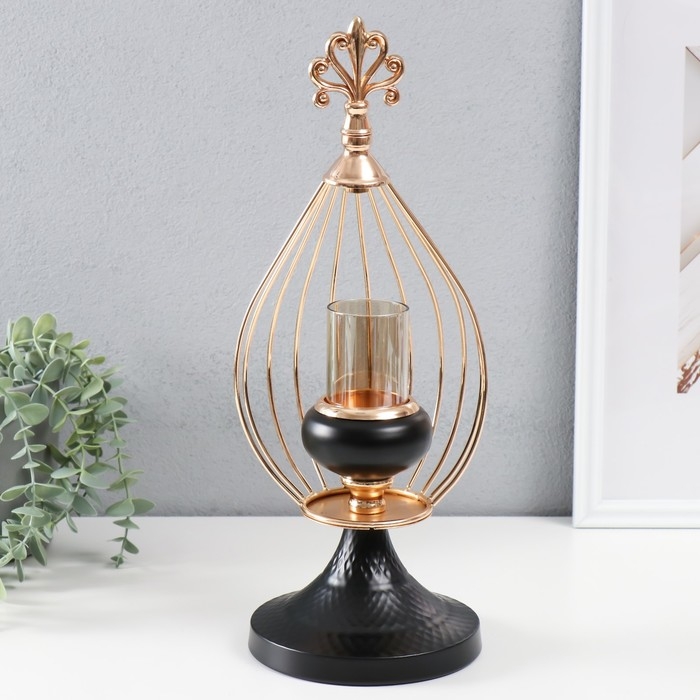 Подсвечник металл, стекло на 1 свечу d=4,5 см "Эвандер" 17,5х16,5х42 см
