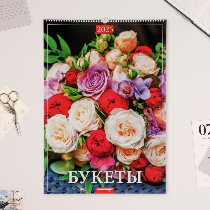 Календарь перекидной на ригеле А2 "Букеты" 2025, 42 х 60 см
