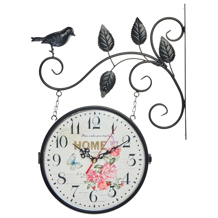 Часы настенные двусторонние, на подвесе "Птичка на ветке", циферблат d-22 см, 50х34 см