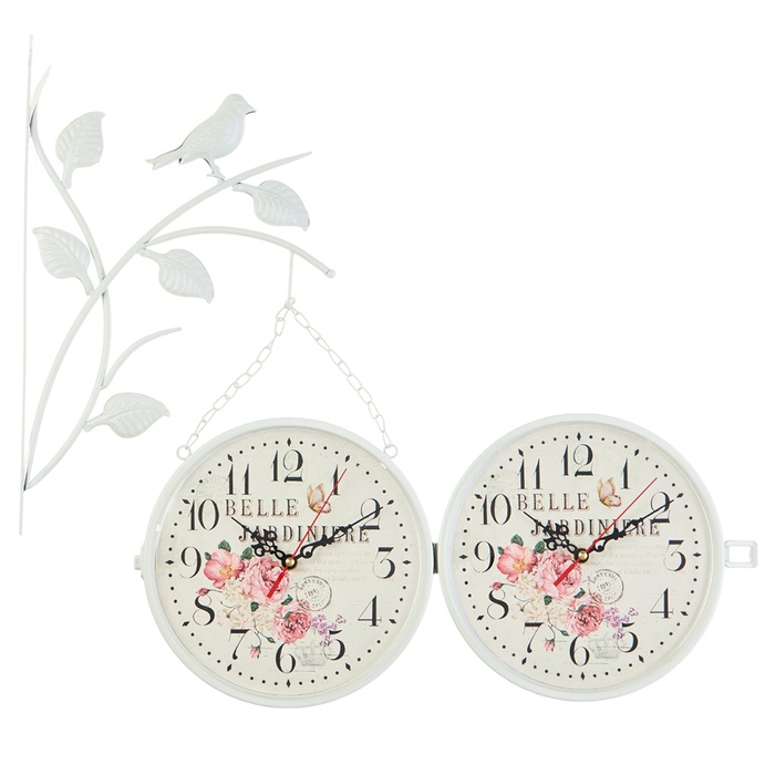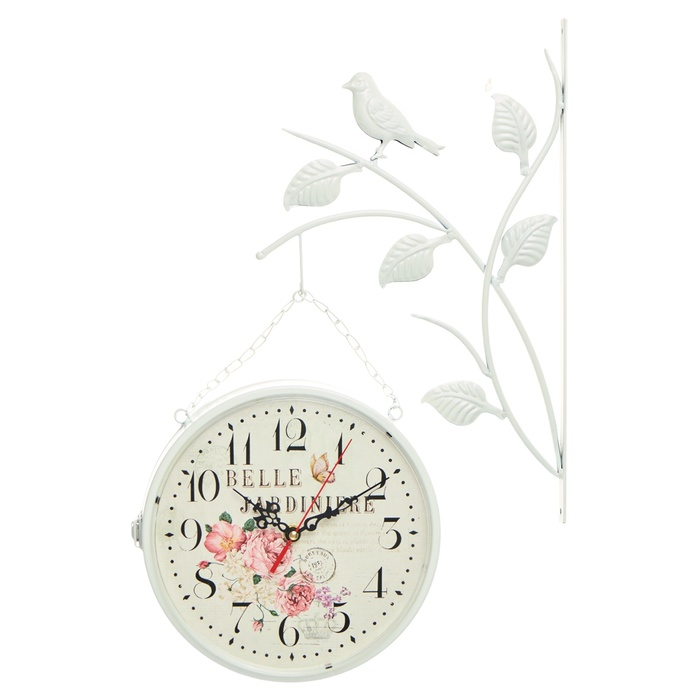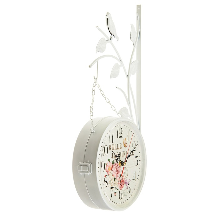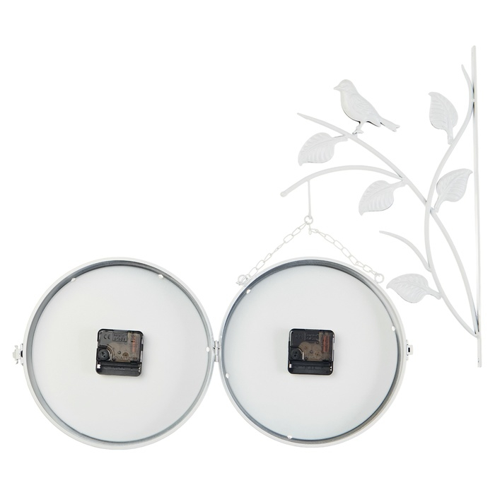 Часы настенные двусторонние, на подвесе "Птичка на ветке", d-23 см, белые