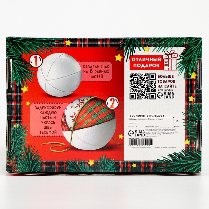 Набор для творчества «Ёлочные игрушки», лоскутки, 3 шара