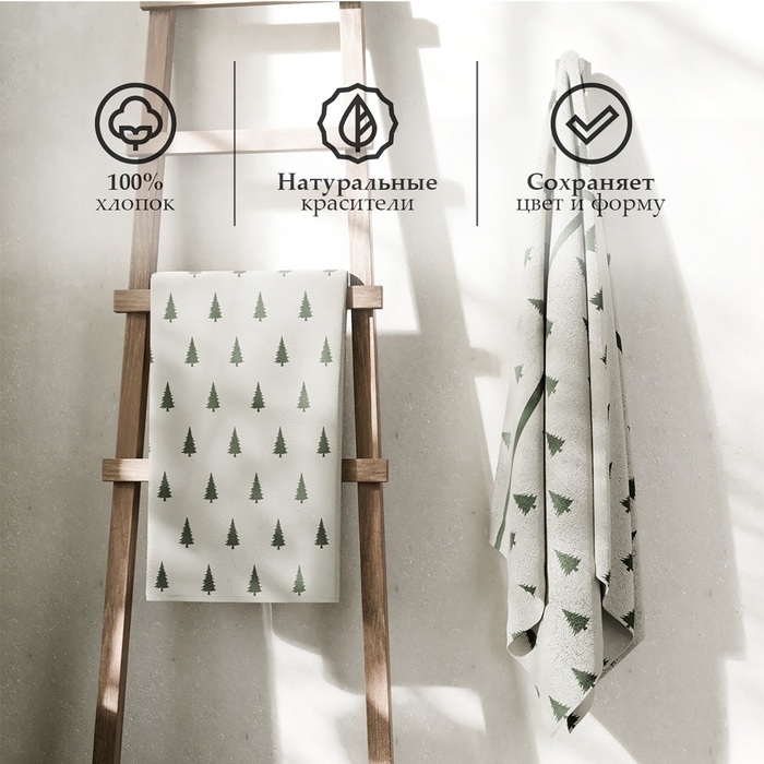 Полотенце махровое Этель "Ёлки" 70х130 см, 100% хлопок, 420 г/м2