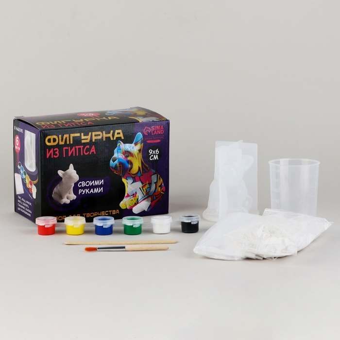 Фигурка гипсовая под раскраску своими руками «Гипсовый бульдог», 9 х 6 см, набор для создания