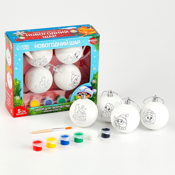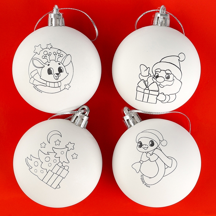 Ёлочные шары под раскраску на новый год «Праздник рядом», d = 5 см, 4 шт, новогодний набор для творчества