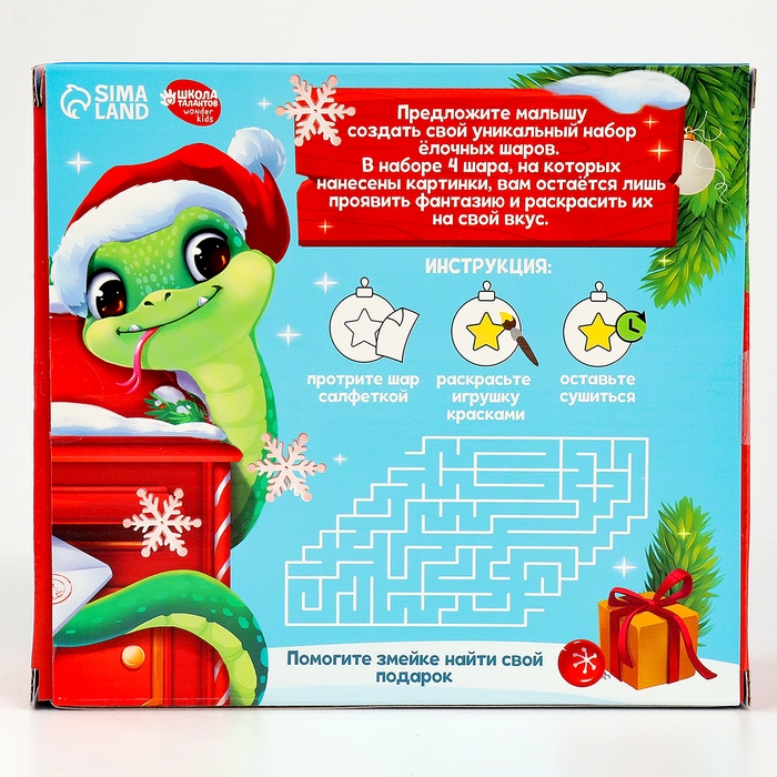 В наборе шары с нанесённым рисунком. Вам остаётся лишь проявить фантазию и раскрасить их на свой вкус. Набор шаров также станет прекрасным подарком друзьям и близким.