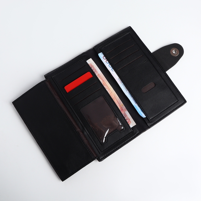 Портмоне мужское на магните, отдел для карт, монет, цвет чёрный