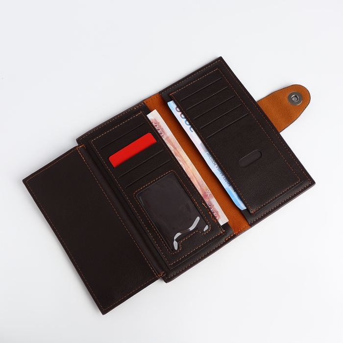 Портмоне мужское на магните, отдел для карт, монет, цвет коричневый