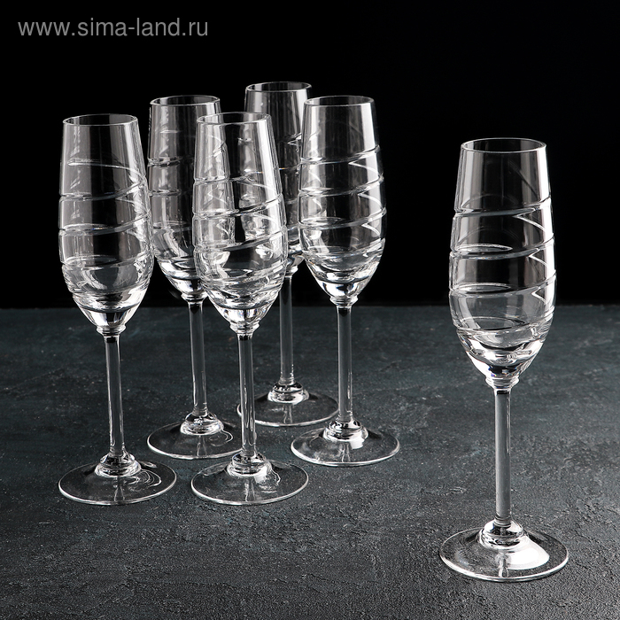 Набор бокалов хрустальных для шампанского «Спираль», 160 мл, 6 шт