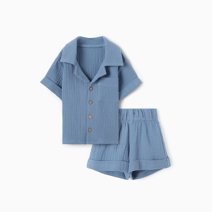 Костюм детский (рубашка и шорты) Крошка Я , р. 80-86, синий