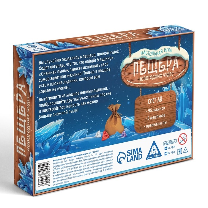 Настольная игра новогодняя «Новый год: Пещера новогодних чудес», 95 льдинок, 5 мешочков, 7+