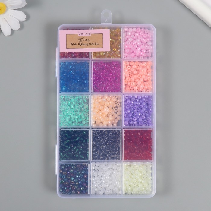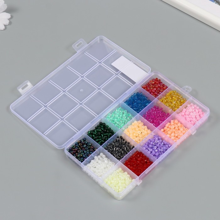 Бисер стекло 6/0 в шкатулке "Цветной" 17,5х10х2 см