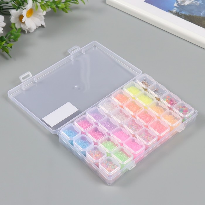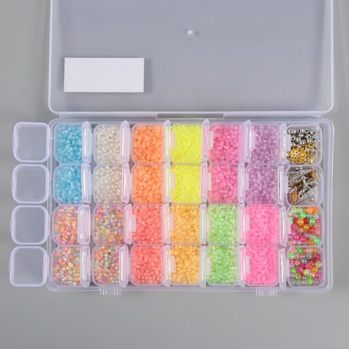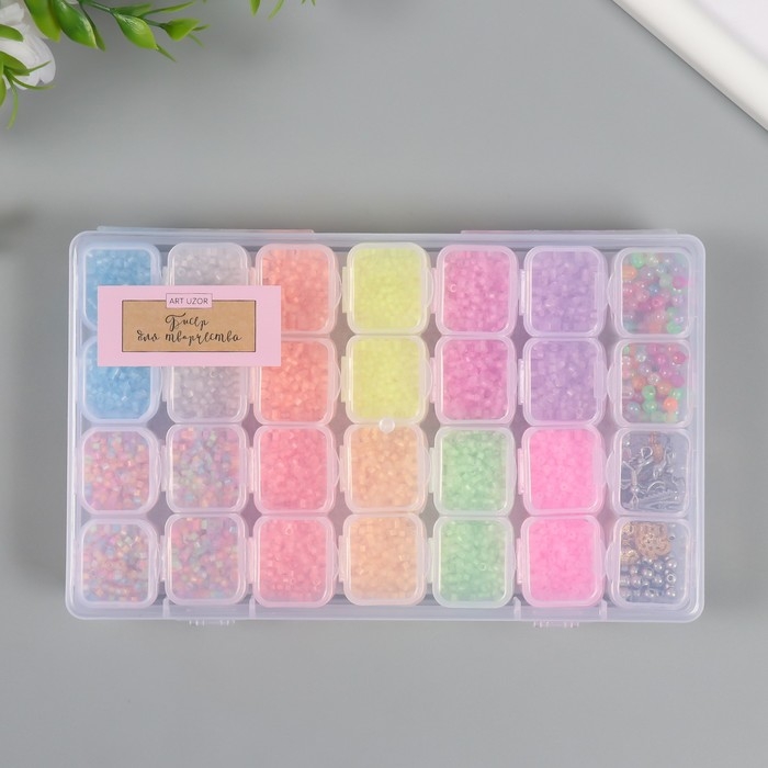 Бисер стекло 12/0 в шкатулке "Светящийся в темноте" стеклярус и бусины 17,5х10х2 см