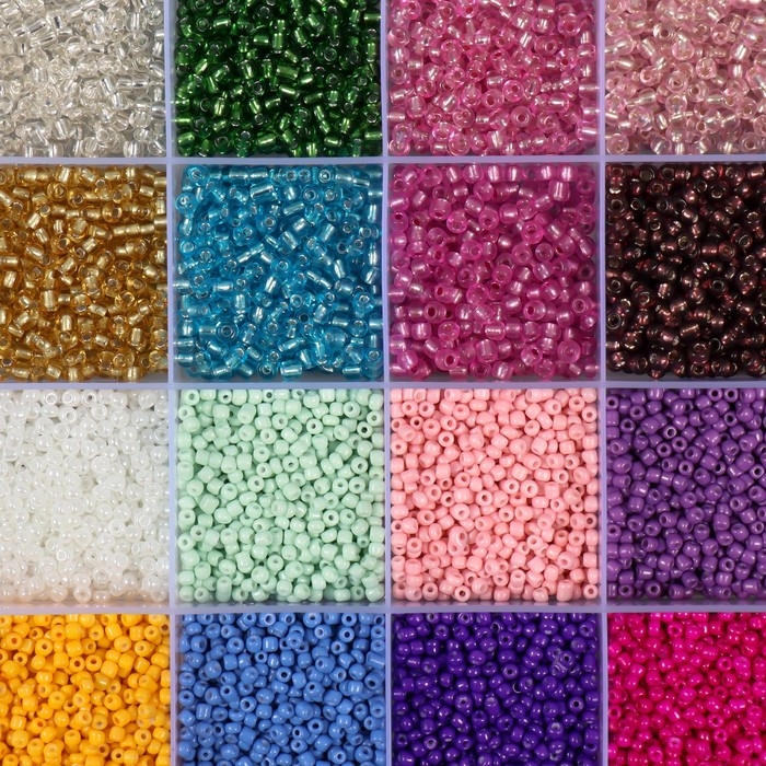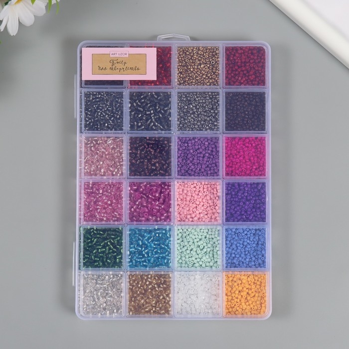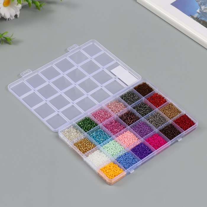 Бисер стекло 12/0 в шкатулке "Яркий" 24 цвета 19х13,5х1,8 см