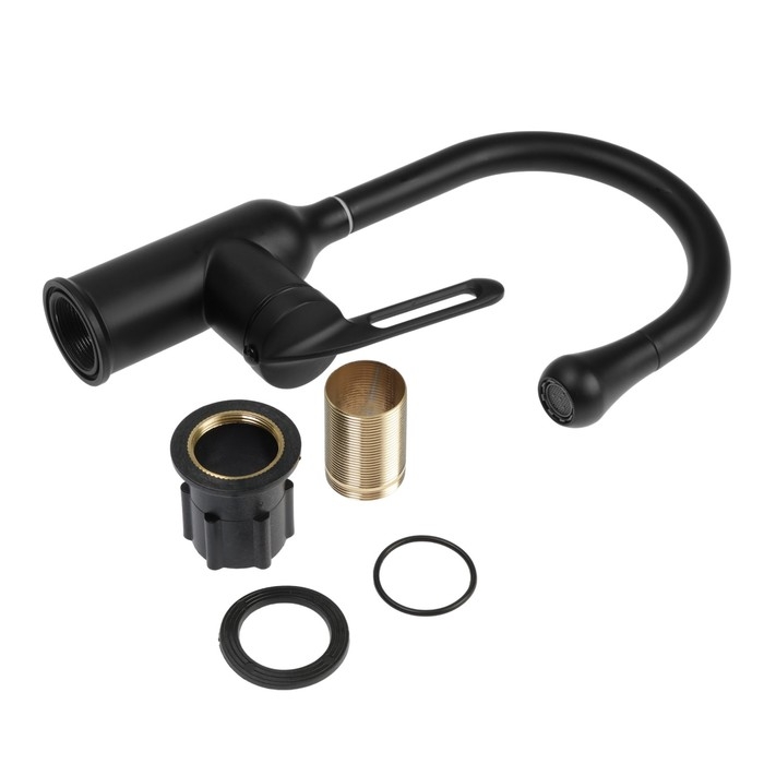 Смеситель для кухни ZEIN Z3741, "капелька", однорычажный, высота излива 13 см, черный