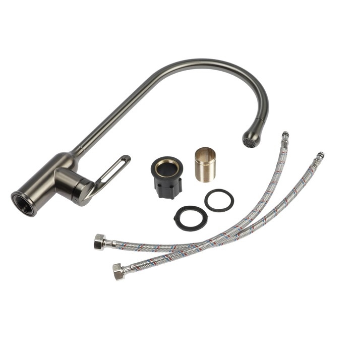 Смеситель для кухни ZEIN Z3742, "капелька", однорычажный, высота излива 26 см, графит