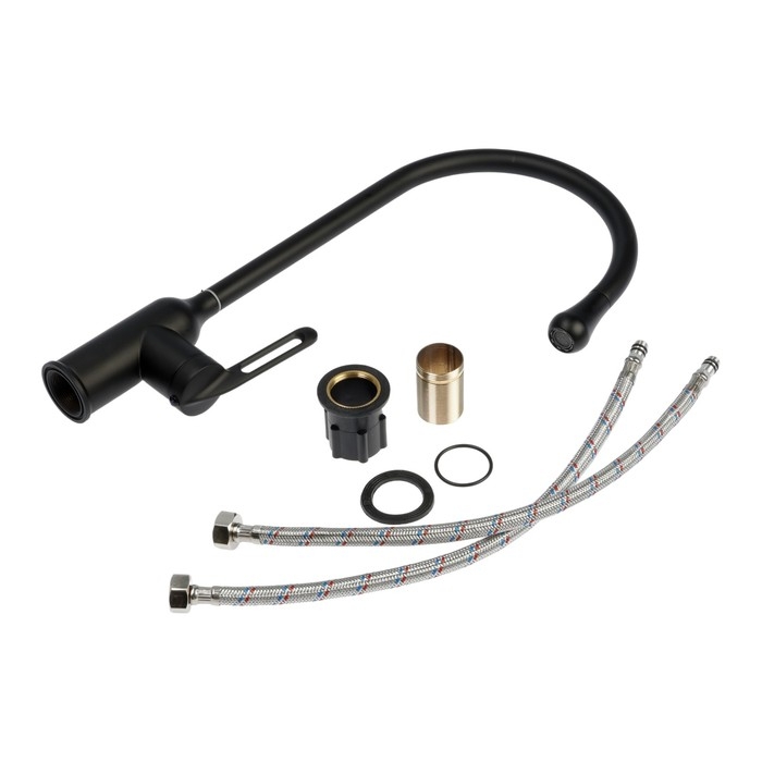 Смеситель для кухни ZEIN Z3743, "капелька", однорычажный, высота излива 26 см, черный