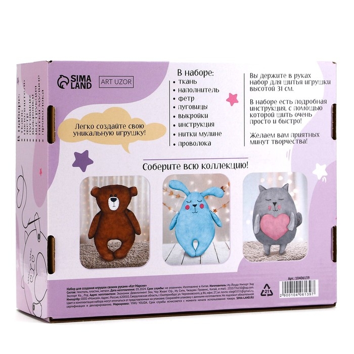 Набор для шитья. Мягкая игрушка своими руками «Кот Марсик», 31 см