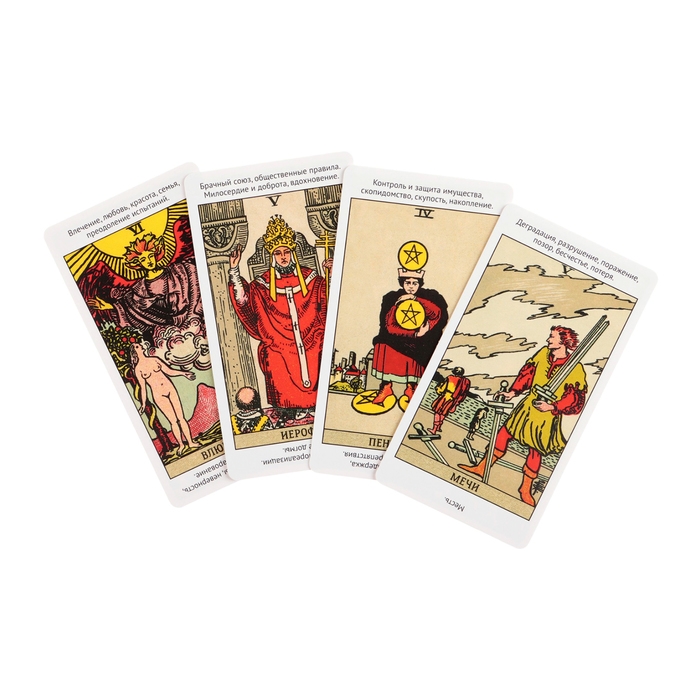 Этот гадальный набор поможет подключиться к своему подсознанию и интуиции, позволит увидеть аспекты жизни, которые остались скрытыми. Гадальные карты помогут лучше понять свои эмоции, мотивации и жизненные цели, дадут поддержку и понимание в трудные периоды жизни. Расклады на картах Таро помогают прояснить ту или иную жизненную ситуацию, дать прогноз на будущее, ответ на волнующие вопросы, разобраться в отношениях с окружающими и достичь гармонии с собой.