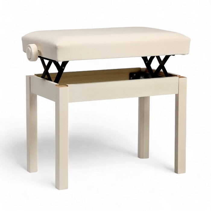 Банкетка для пианино Music Life сиденье 55х34, высота 48-58 см, белая, нагрузка 100 кг