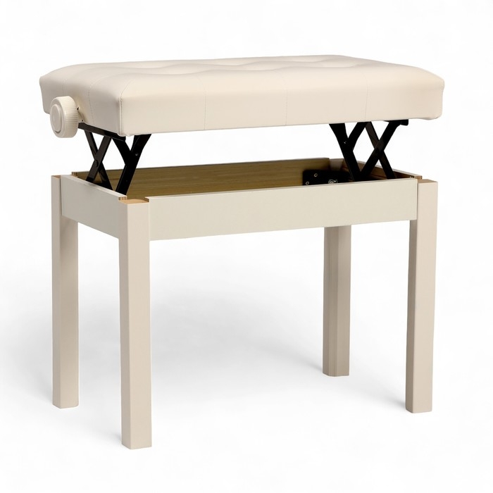 Банкетка для пианино Music Life сиденье 55х34, высота 48-58 см, белая, нагрузка 100 кг