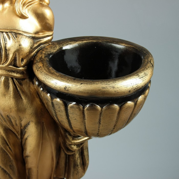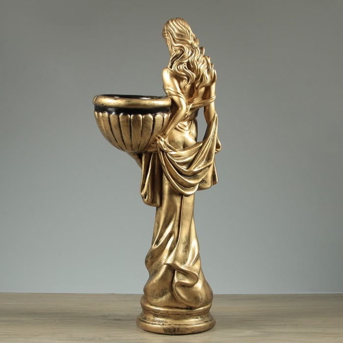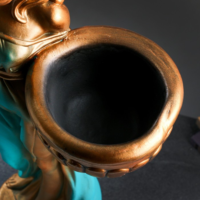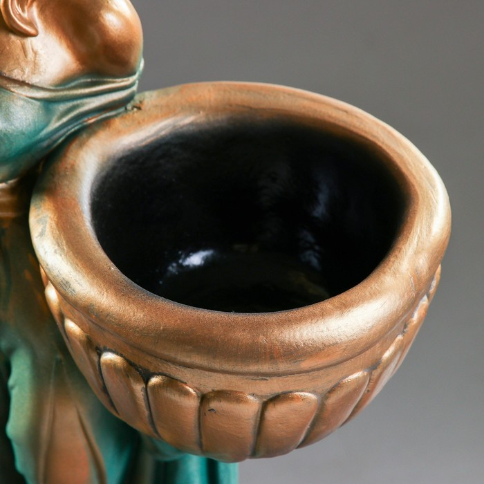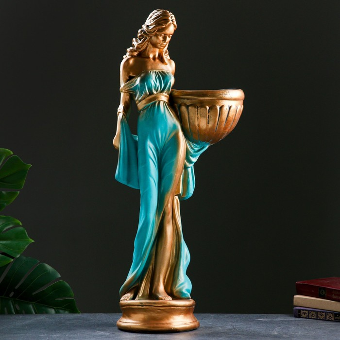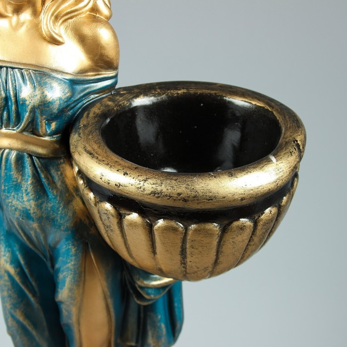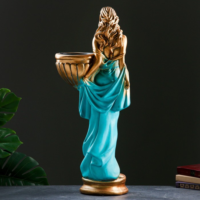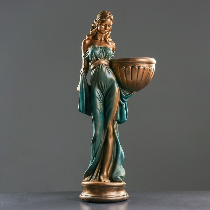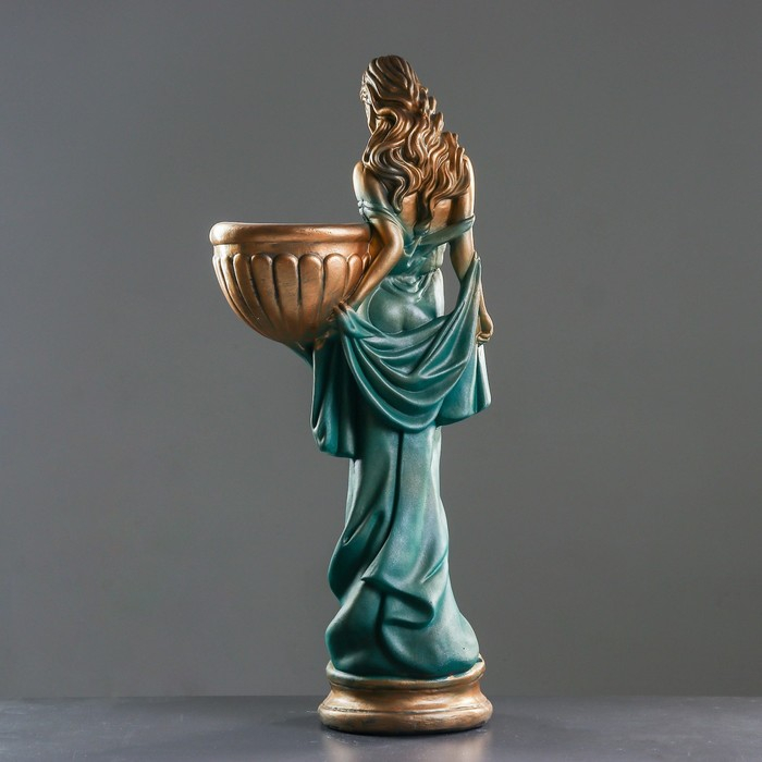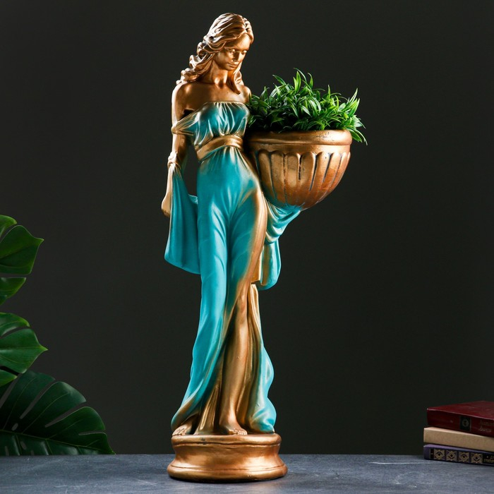 Фигура с кашпо "Девушка в платье" бронза голубой-зеленый, 1,2 л / 21х84х34см