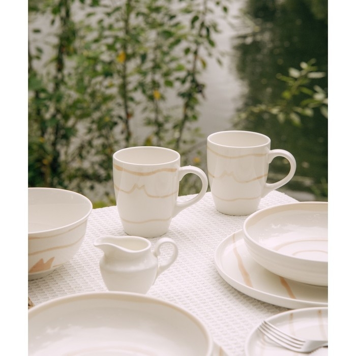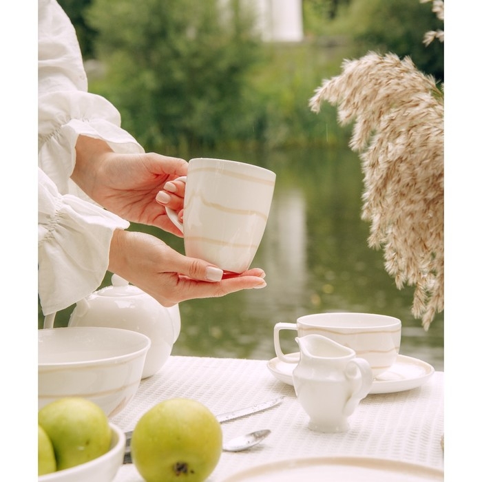 - Стильный дизайн: нежный бежевый цвет с полосатым узором добавляет изысканности вашему столу.