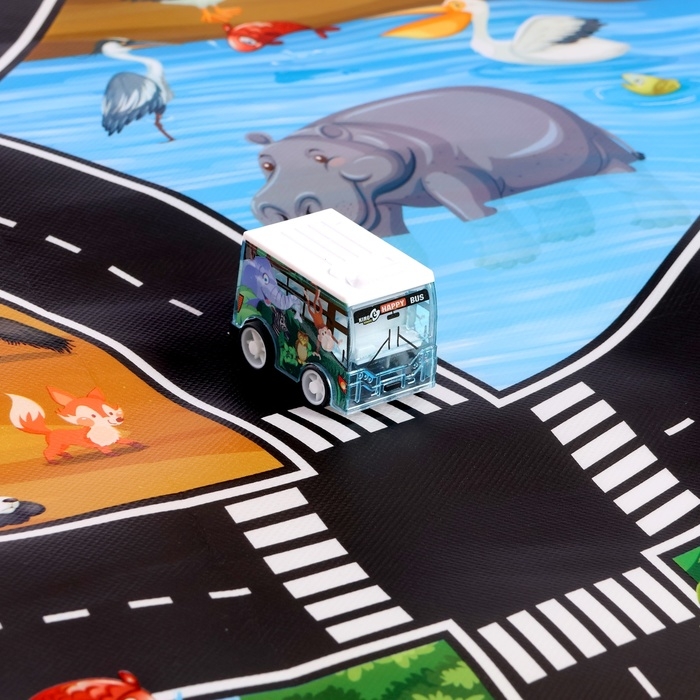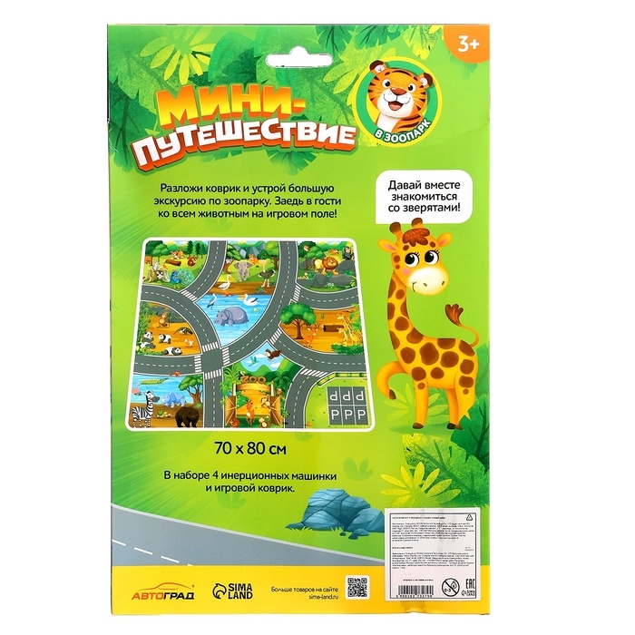 Разложи коврик и устрой большую экскурсию по зоопарку. Заедь в гости ко всем животным на игровом поле!
