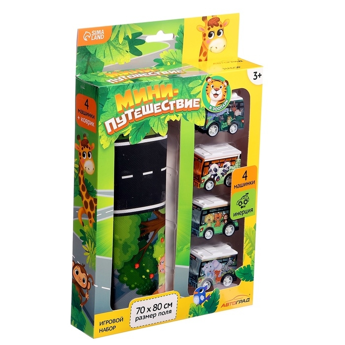 Игровой набор «Зоопарк» — это увлекательный комплект для малышей, который перенесёт вашего ребёнка в мир дикой природы. Набор включает 4 яркие инерционные машинки и развивающий коврик-дорогу с тематическим дизайном, который станет отличной основой для увлекательных ролевых игр.