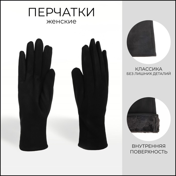 Перчатки женские, безразмерные, с утеплителем, цвет чёрный