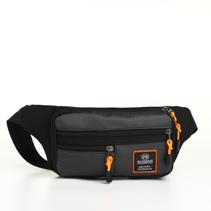 Поясная сумка на молнии, 3 наружных кармана, цвет серый/чёрный