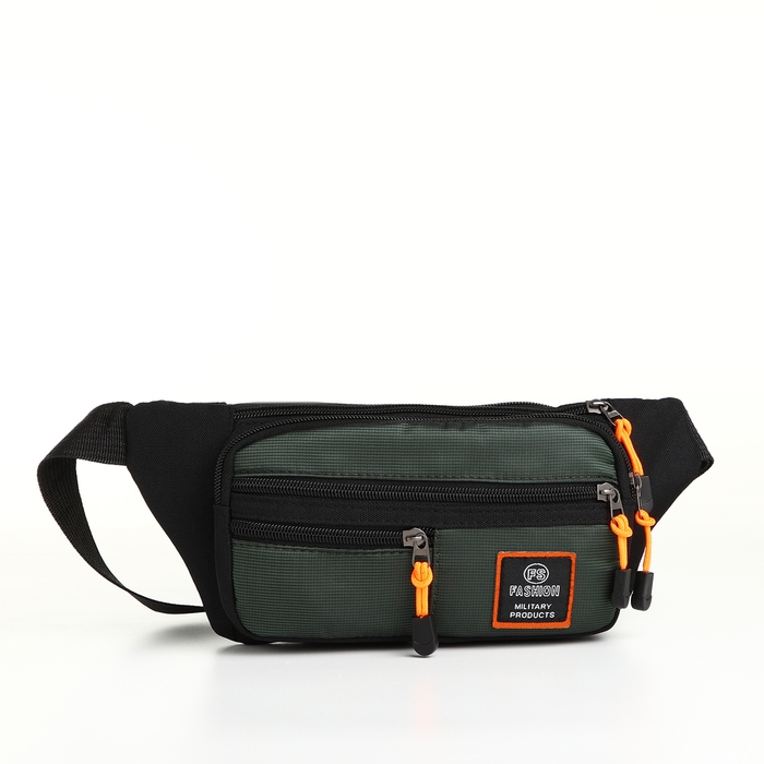 Поясная сумка на молнии, 3 наружных кармана, цвет зелёный/чёрный