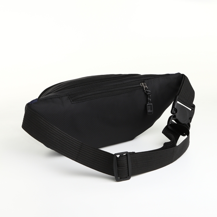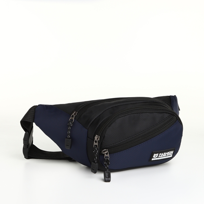 Поясная сумка на молнии, 3 наружных кармана, цвет синий/чёрный