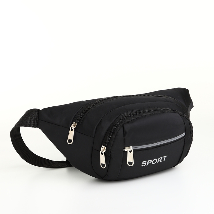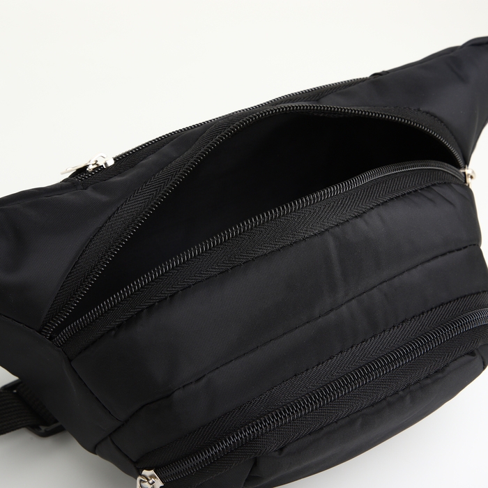 Поясная сумка на молнии, 3 наружных кармана, цвет чёрный