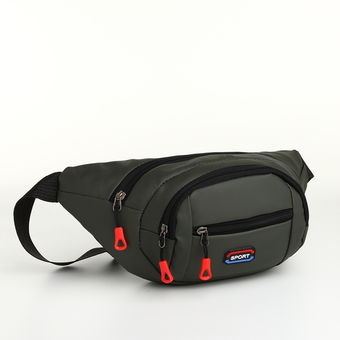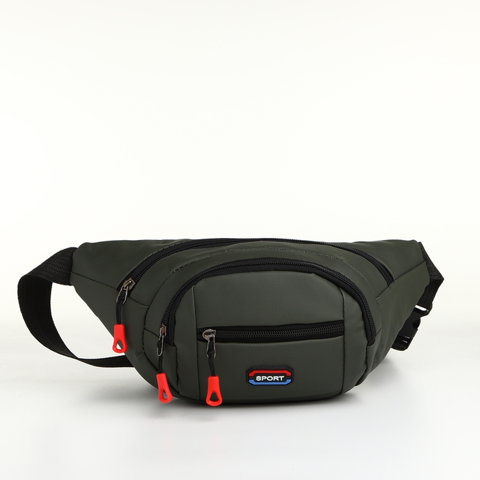 Поясная сумка на молнии, 3 наружных кармана, цвет зелёный