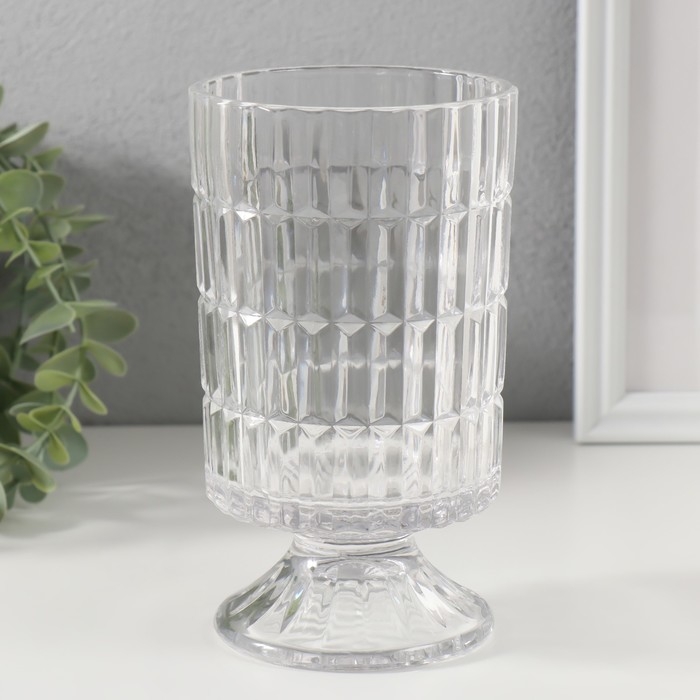 Подсвечник стекло на 1 свечу "Грани. На ножке" d=9 см прозрачный 10х10х17,5 см