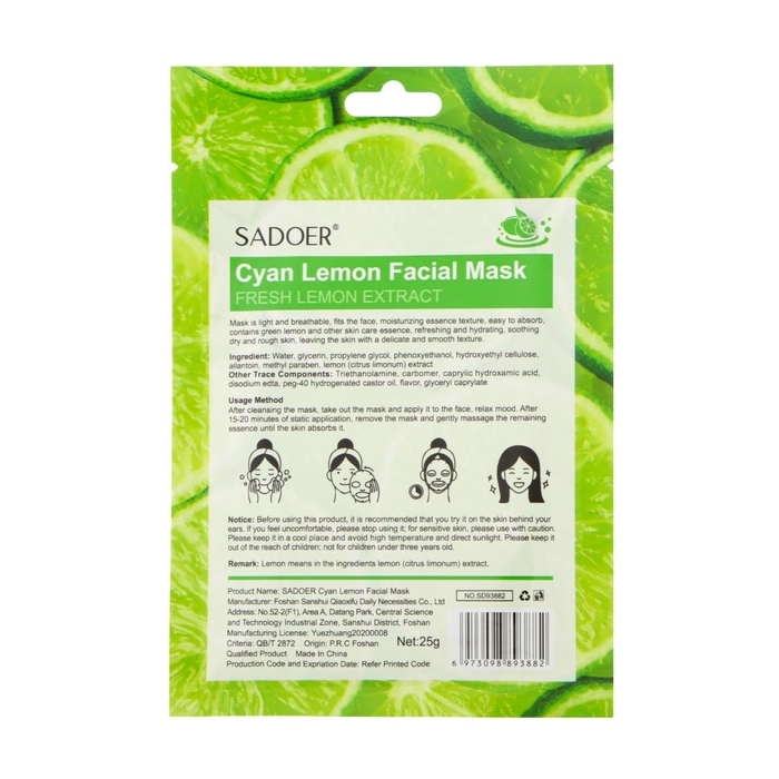 Способ применения: нанесите маску на сухую кожу, избегая области вокруг глаз и губ. Оставьте маску на 15-20 минут, затем тщательно смойте тёплой водой. Для достижения наилучших результатов используйте маски 2-3 раза в неделю.