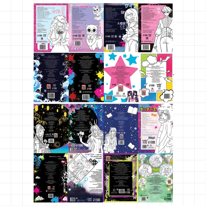 Супернабор аниме-раскрасок, 16 в 1, А4 и А5