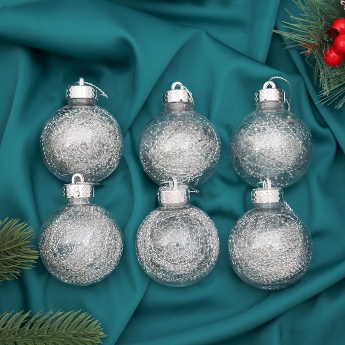 Набор шаров пластик d-6 см, 6 шт "Дончо" серебро прозрачный