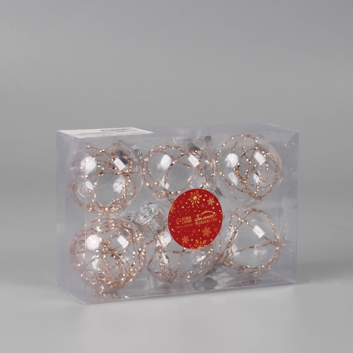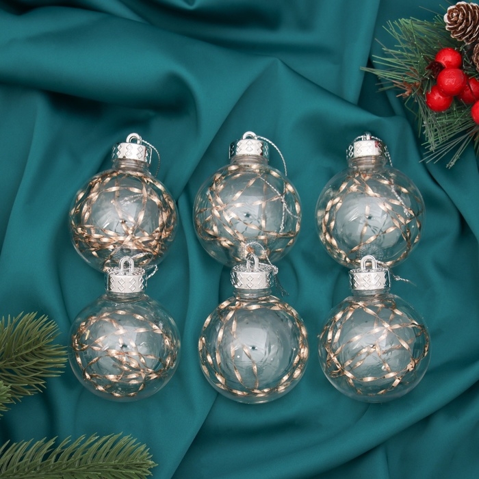 Набор шаров пластик d-6 см, 6 шт "Джотто" золото прозрачный