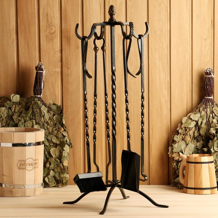 Каминный набор КН-6-3 кованый "Спирали", цвет бронза, 4 предмета: кочерга, щипцы, совок, метёлка 3