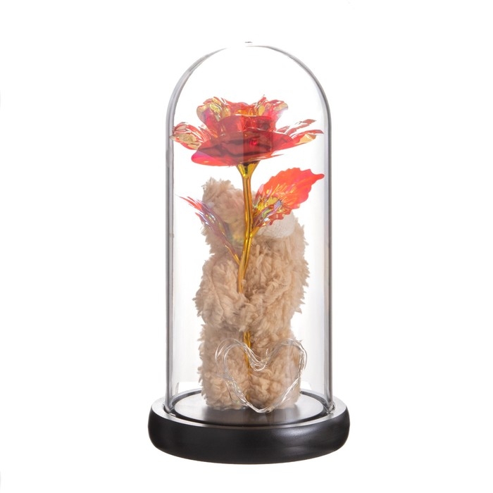 Ночник колба «Мишка с цветком» LED красный 3хААА 10,5х10,5х22см