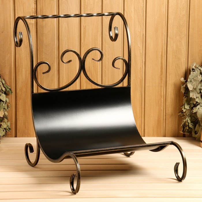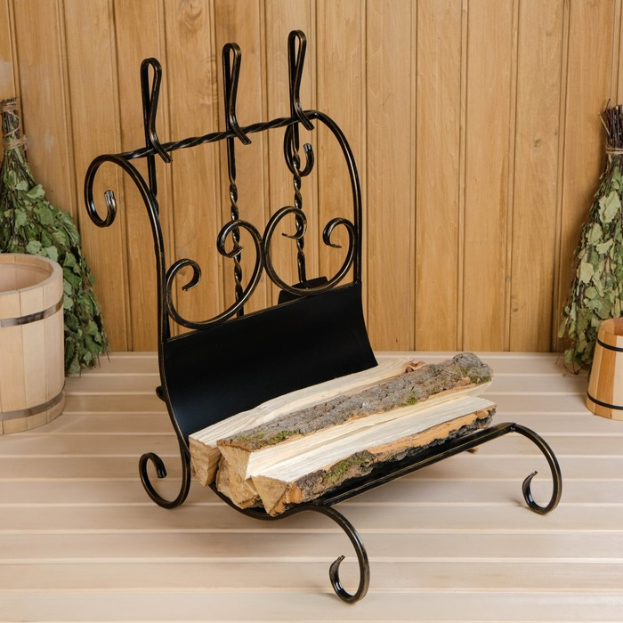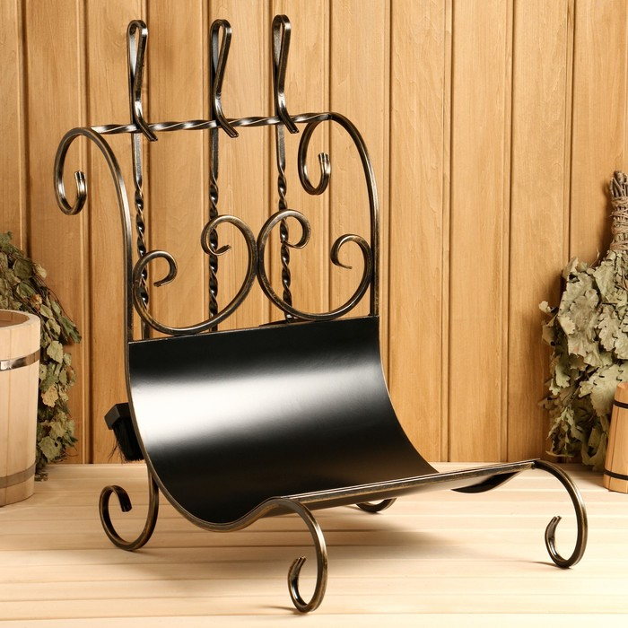 Каминный набор КН-6-4 кованый с дровницей, цвет бронза, 3 предмета: кочерга, совок, метёлка