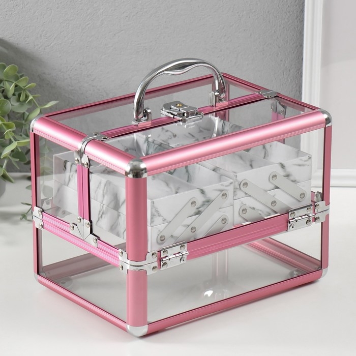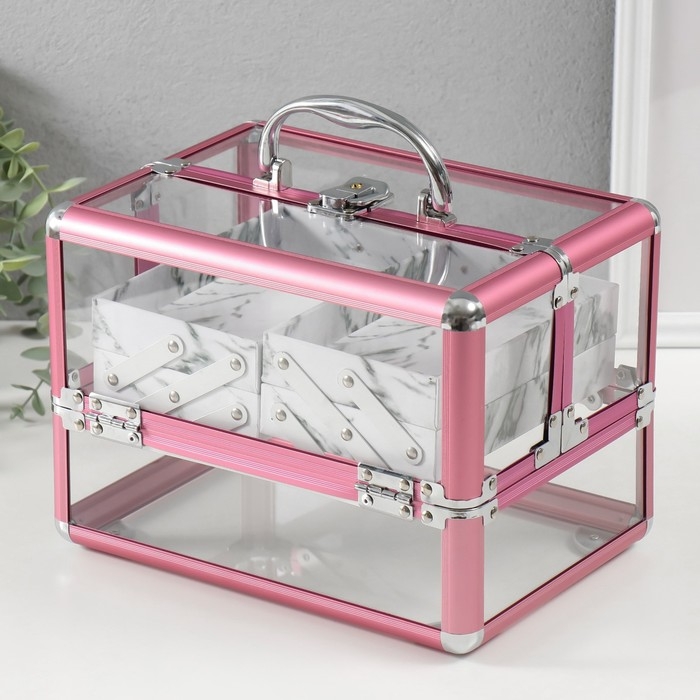 Шкатулка пластик металлокаркас "Розовый металлик" 18х25х18 см