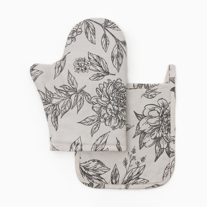 Набор Варежка-прихватка, прихватка Этель "Black flowers" 100% х/л, саржа 190 г/м2