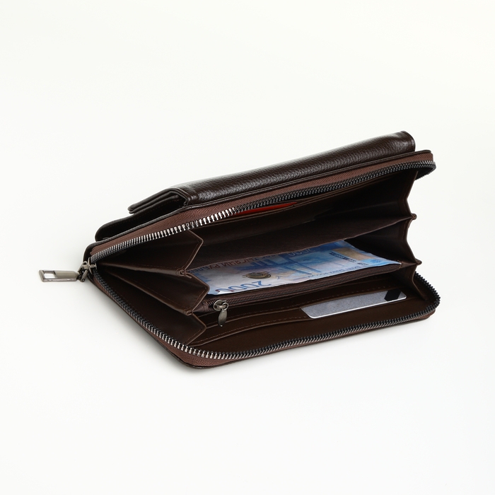 Портмоне-клатч мужской на молнии TEXTURA, цвет коричневый