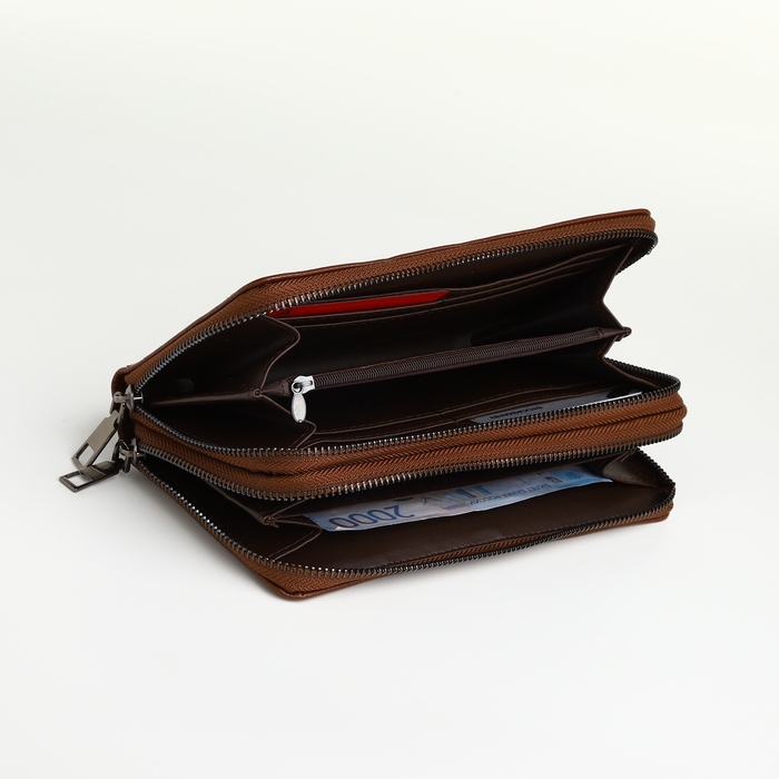 Портмоне-клатч мужской на молнии TEXTURA, цвет коричневый