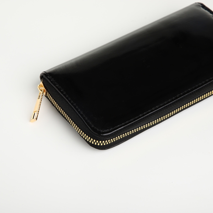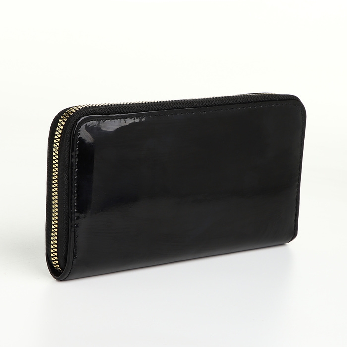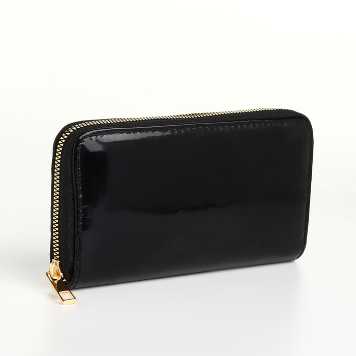 Кошелёк женский на молнии, лакированный, цвет чёрный