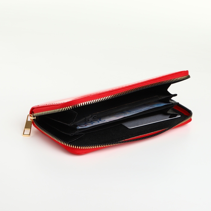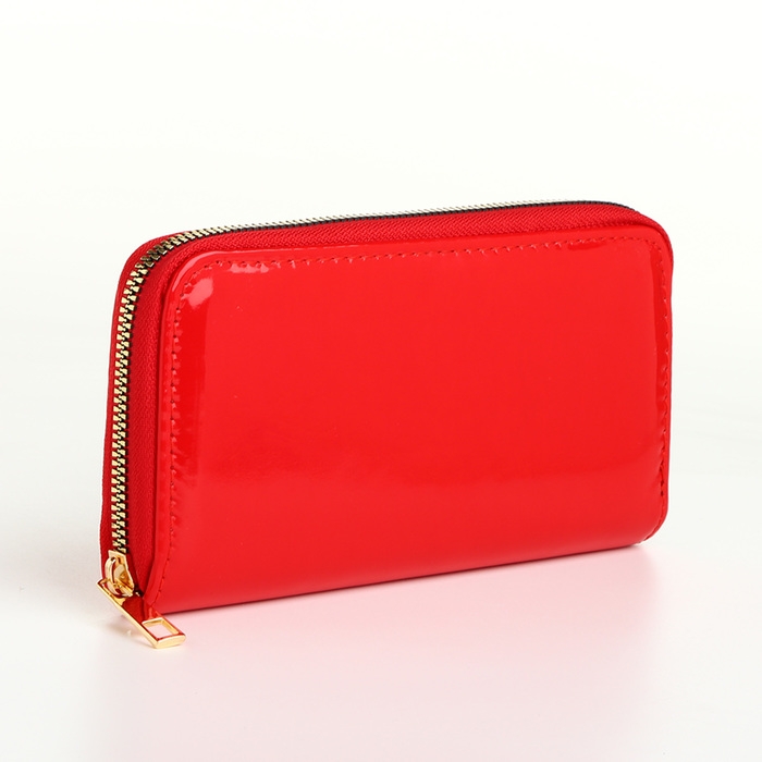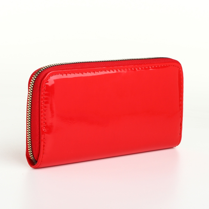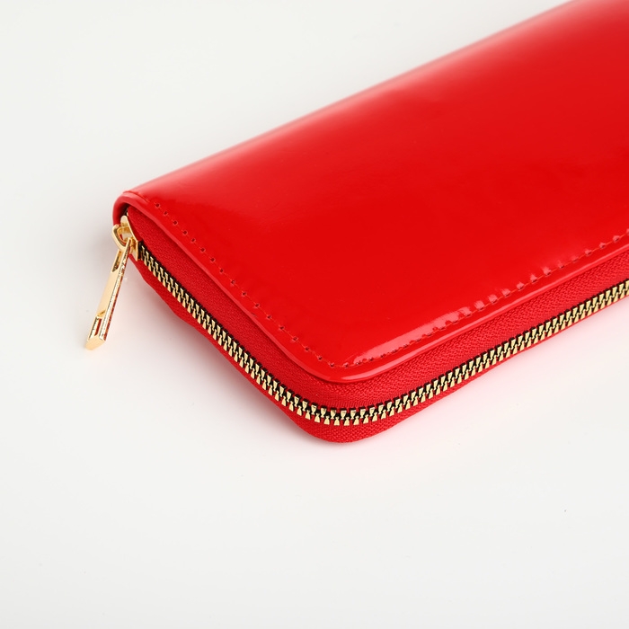 Кошелёк женский на молнии, лакированный, цвет красный