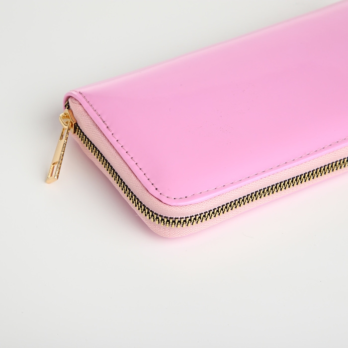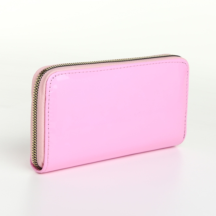 Кошелёк женский на молнии, лакированный, цвет розовый