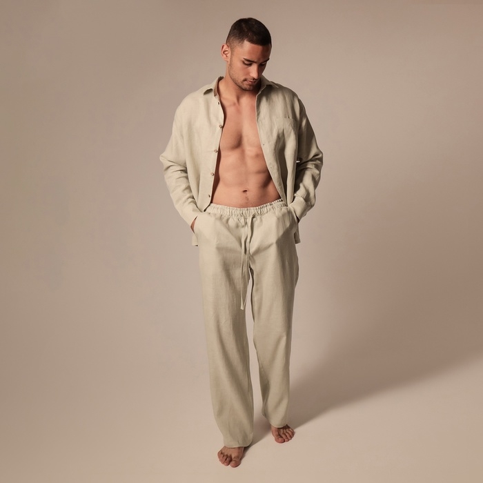 Костюм мужской домашний (рубашка с длинным рукавом и брюки) SL HOME р. XL, светло-зеленый